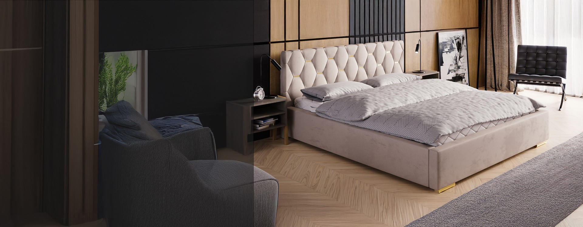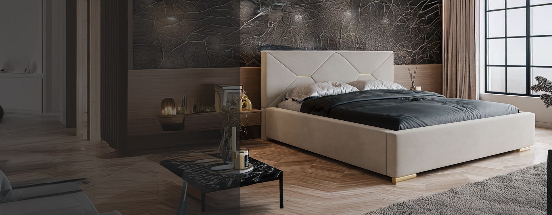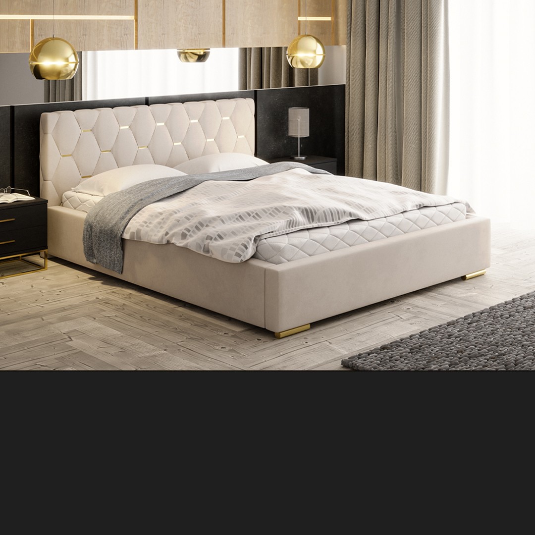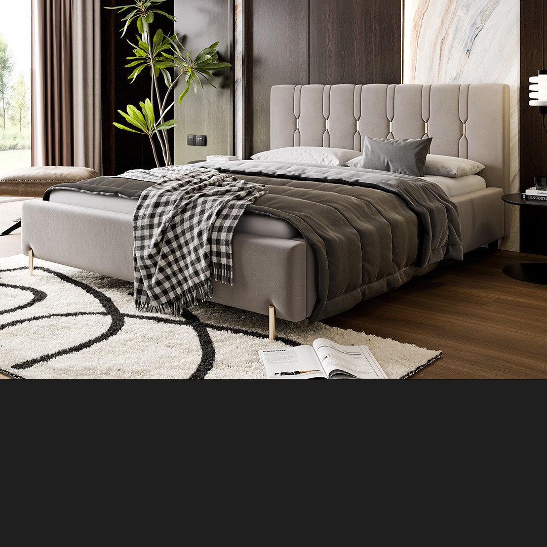 Łóżko tapicerowane z pojemnikiem na pościel i...