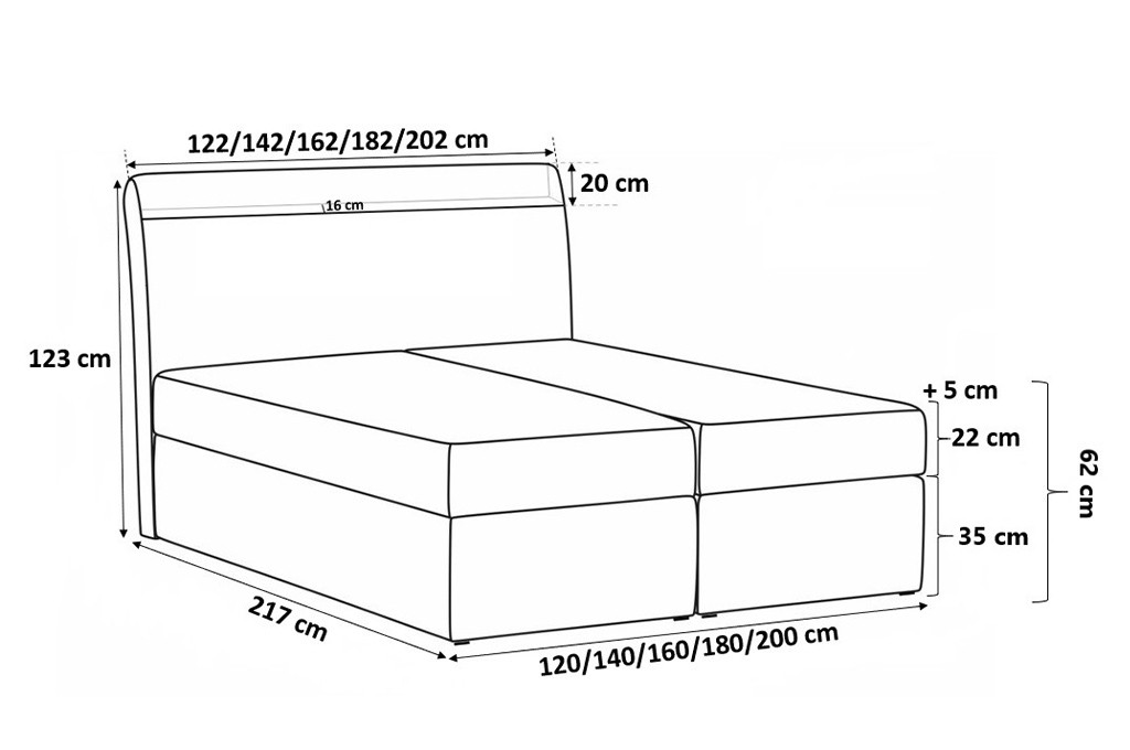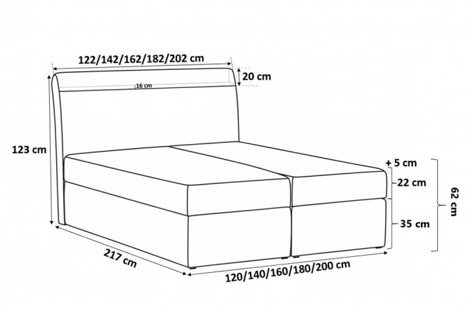 • Powierzchnia spania: 120/140/160/180/200x200cm