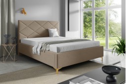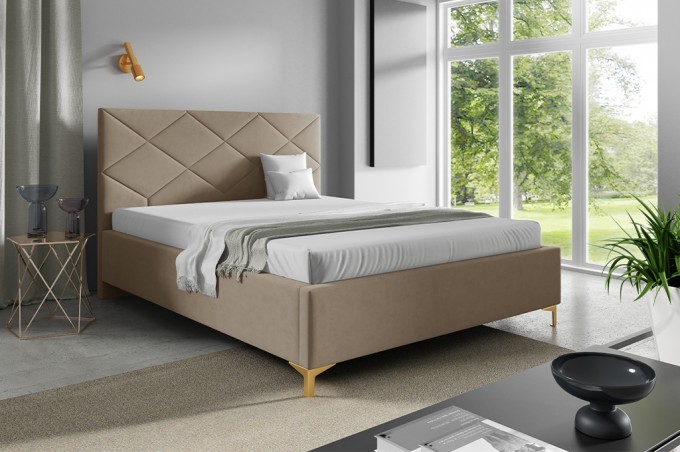 Korpus jest tapicerowany tkaniną typu welur, dzięki której łóżko prezentuje się elegancko i stworzy w Twojej sypialni ciepłą i przytulną atmosferę.