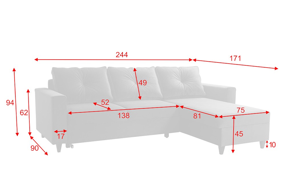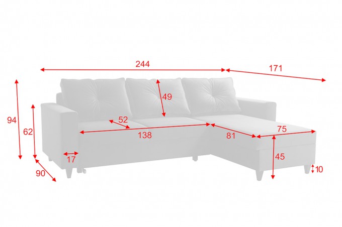 System rozkładania typu Delfin to jeden z najpopularniejszych systemów rozkładania narożników. Spod siedziska wyjeżdżamy wózkiem, a następnie podciągamy leżący na nim materac do góry, który zrównuje się z siedziskiem. I to wszystko! Zastosowanie takiego mechanizmu uniemożliwi zamontowanie pod siedziskiem schowka na pościel, zazwyczaj znajduje się pod drugą częścią narożnika. Po rozłożeniu powierzchnia spania jest duża i wygodna.