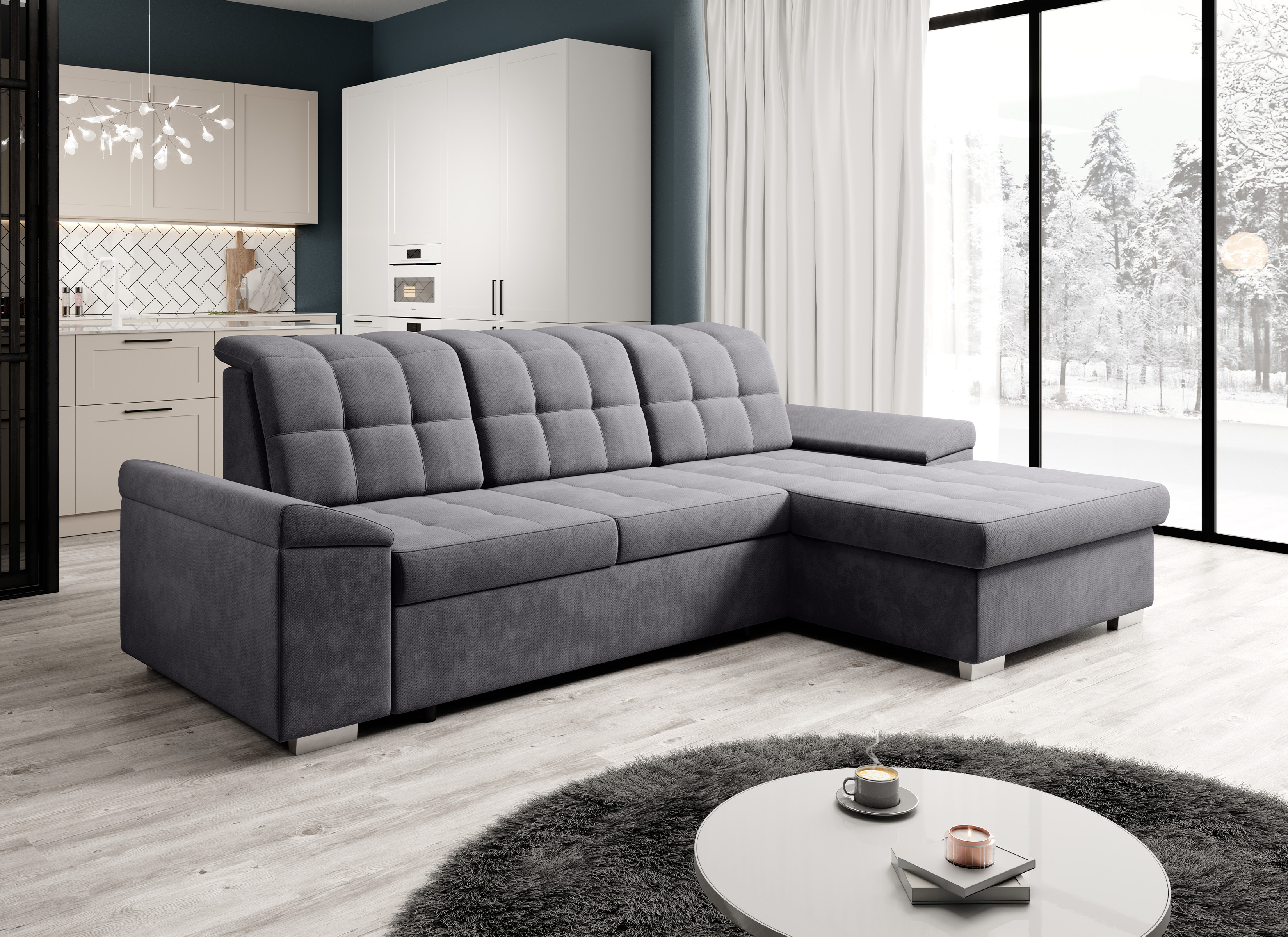 Narożnik OLIVIER będzie doskonałym wyborem zarówno do nowoczesnych mieszkań, jak i mniejszych salonów, wymiary zostały dobrane tak, że wkomponował się w każdej wielkości pomieszczenie. Wyposażony w szereg funkcjonalnych rozwiązań pozwoli na przemianę naszego salonu w prawdziwe komfortową przestrzeń jedocześnie stając się ozdobą całej aranżacji.