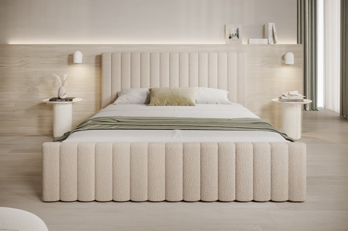 Ten model zachwyca nie tylko stylowym wyglądem, ale również trwałością – składa się ono z korpusu oraz szkieletu. Korpus stworzony jest z wytrzymałego szkieletu drewnianego oraz płyty o grubości 22 mm wraz ze sklejką o grubości 18 mm. Za komfort snu odpowiada drugi element, czyli drewniany lub metalowy stelaż z elastycznymi listewkami. Dbają one o przepływ powietrza i równomiernie rozkładają ciężar.