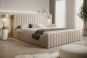 ISARA SLIM to zachwycające łóżko tapicerowane ozdobione ozdobione pionowymi przeszyciami, które pięknie uwypuklają elementy. Przeszycia znajdują się zarówno na wezgłowiu jak i dolnej ramie łóżka.