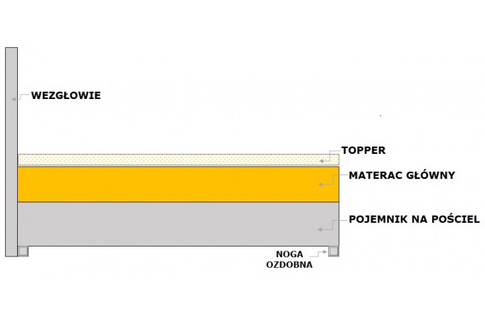 W zestawie z łóżkiem znajduje się materac, który składa się ze sprężyn kieszeniowych bonellowych oraz pianki wysoko elastycznej T30. Takie połączenie sprawia, że łóżko jest niezwykle wygodne. Uczucie te potęguje dodatkowy materac nawierzchniowy topper o grubości 5cm.