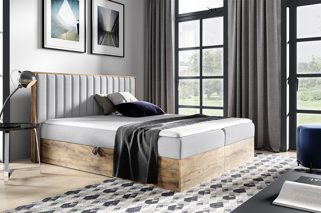 Łóżko kontynentalne HOLZ to idealne połączenie motywu drewna z nowoczesnym designem. Mebel ten idealnie wpasowuje się w większość wnętrz, szczególnie w te o nowoczesnym charakterze.