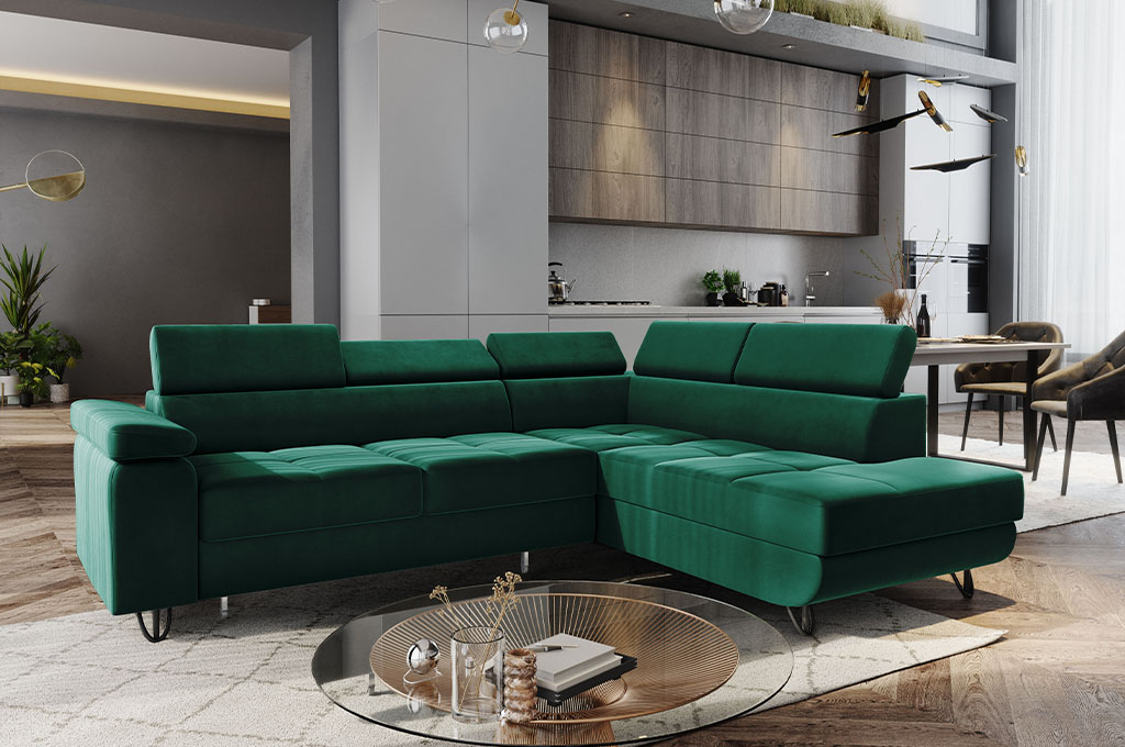 Narożnik JUREK to designerski wybór do nowoczesnego salonu. Kanapa narożna, która zachwyca swoim wyglądem i komfortem, pozwalając na chwilę wytchnienia.