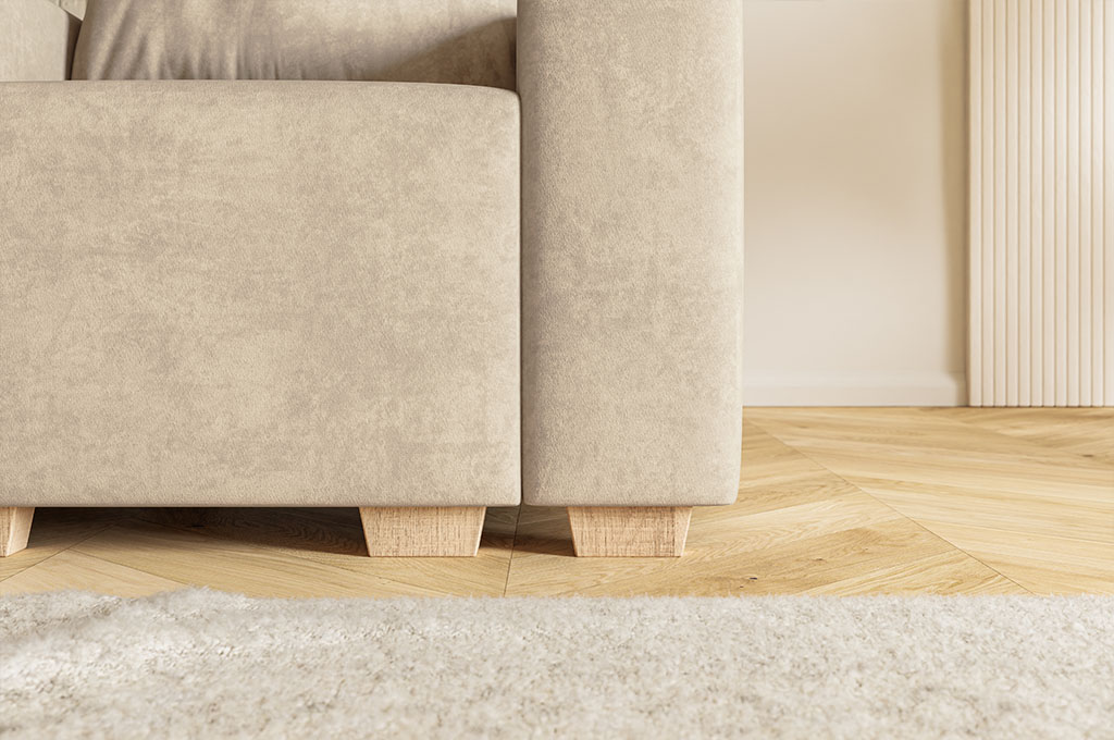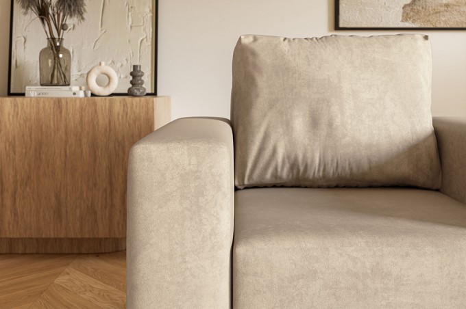 Cała konstrukcja składa się z wysokogatunkowej pianki T30 - to twardsza pianka, która dzięki swoim wyjątkowym właściwością świetnie sprawdza się jako wypełnienie sztywniejszych mebli tapicerowanych oraz materacy, oferując wsparcie i odpowiednią elastyczność. Dzięki swojej specyficznej strukturze, zapewnia doskonałe właściwości użytkowe, łącząc trwałość z komfortem. Jest to pianka o dużej gęstości, co przekłada się na jej wytrzymałość i długowieczność. Kanapa nie posiada efektu "zapadania się" przy siadaniu.