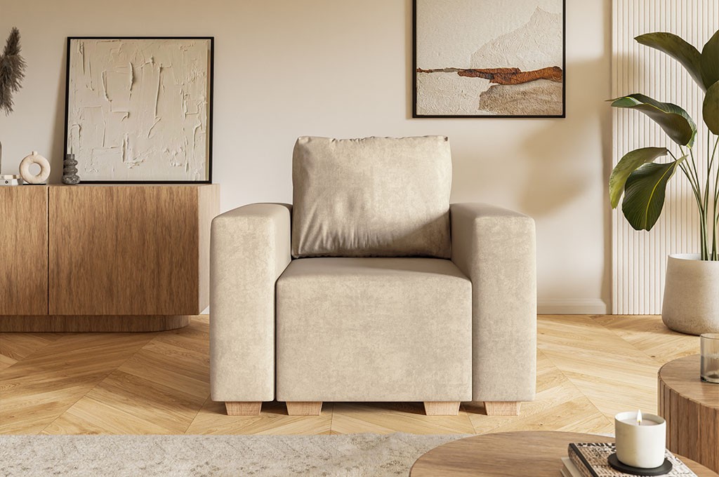 Elegancka i funkcjonalna – taka jest seria mebli tapicerowanych SOFIA, znajdziesz w niej sofę 3 osobową, sofę 2 osobową oraz prezentowany na poniższych zdjęciach fotel z wygodnymi i szerokimi podłokietnikami, które zachęcają do odpoczynku na nim. Jego solidna konstrukcja z drewna i płyt wiórowych zapewnia stabilność i trwałość, a sprężyny bonell oraz wysokiej jakości pianka T30 gwarantują wyjątkowy komfort siedzenia. To idealny wybór dla tych, którzy cenią zarówno estetykę, jak i wygodę.