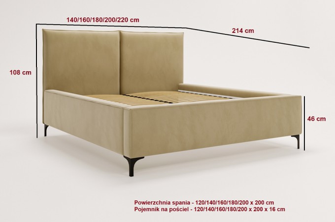 Posiada wezgłowie będące znakomitą ozdobą pomieszczenia, wygodnym oparciem podczas wieczornego czytania książek oraz elementem ochraniającym ścianę przed zabrudzeniem. Idealnie odnajdzie się w większości aranżacji.