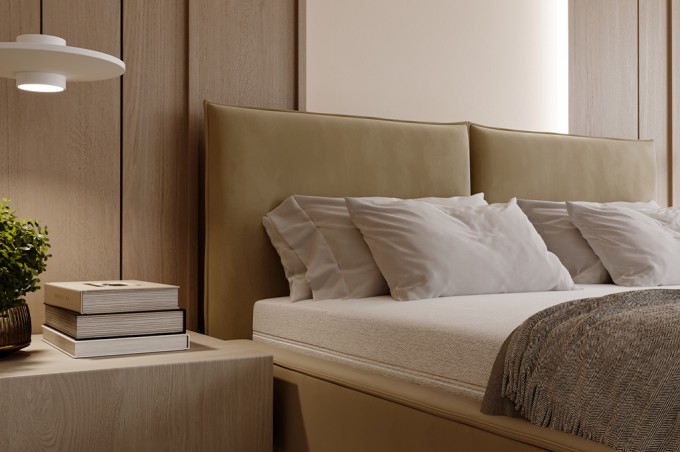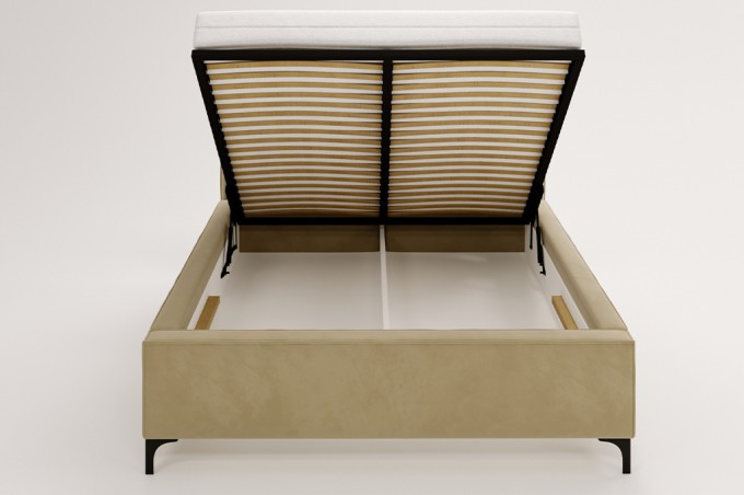Cała przestrzeń pod materacem została zagospodarowana, co sprawia, że łóżko łączy w sobie elegancki wygląd z praktycznym zastosowaniem – idealne rozwiązanie do nowoczesnych wnętrz, w których liczy się każdy centymetr.