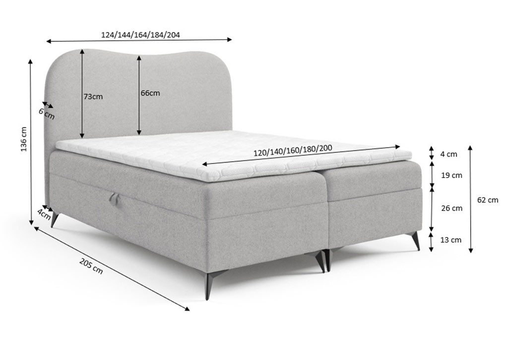 Dostępne w wielu rozmiarach: 120x200, 140x200, 160x200, 180x200, 200x200 – idealnie dopasuje się do każdej sypialni, niezależnie od jej wielkości.