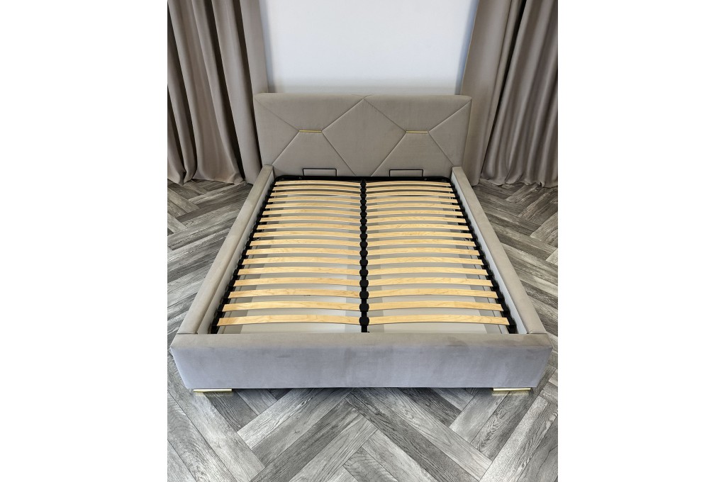 Łóżko standardowo wyposażone zostało w metalowy stelaż z siłownikami gazowymi 1000N oraz duży pojemnik na pościel pod całą powierzchnią spania. Korpus stoi na metalowych nóżkach. Szkielet łóżka został stworzony z drewna oraz płyty meblowej.