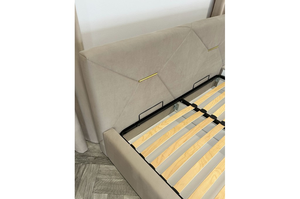 LUIZA to bryła we współczesnej formie, która sprawdzi się w każdym modnym wnętrzu. Tapicerowane wezgłowie posiada złote wstawki, które z połączeniem welurowej tkaniny, skutecznie przyciąga wzrok zachwycając wszystkich domowników i gości. Dostępne są również wstawki w kolorze czarnym oraz srebrnym. Całość oparta jest na nóżkach które pasują do złotych elementów we wezgłowiu, dzięki czemu prezentuje się przepięknie i stworzy w Twojej sypialni ciepłą i przytulną atmosferę, dostępne są w trzech kolorach - złotym, czarnym i srebrnym.