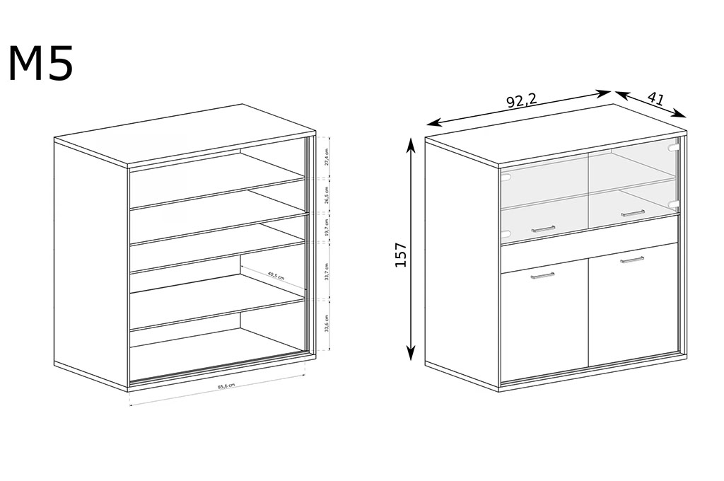 • witryna wykonana z wysokiej jakości płyty laminowanej