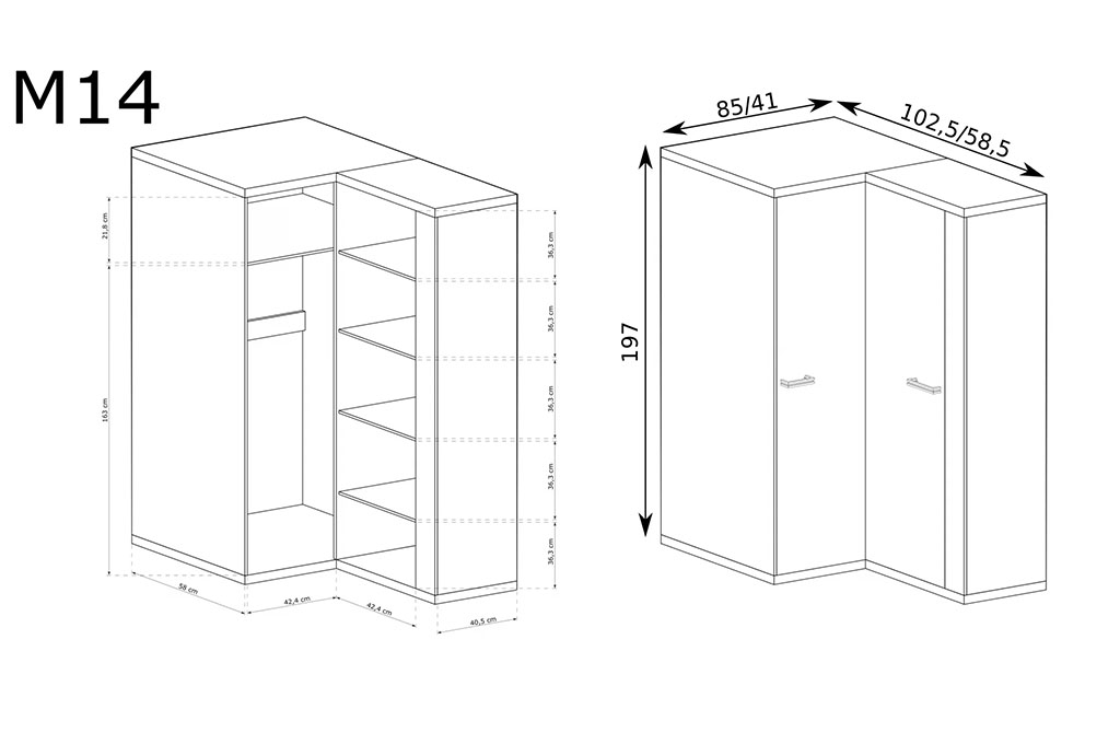 Szafa narożna MEDIOLAN M14