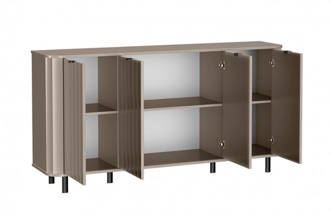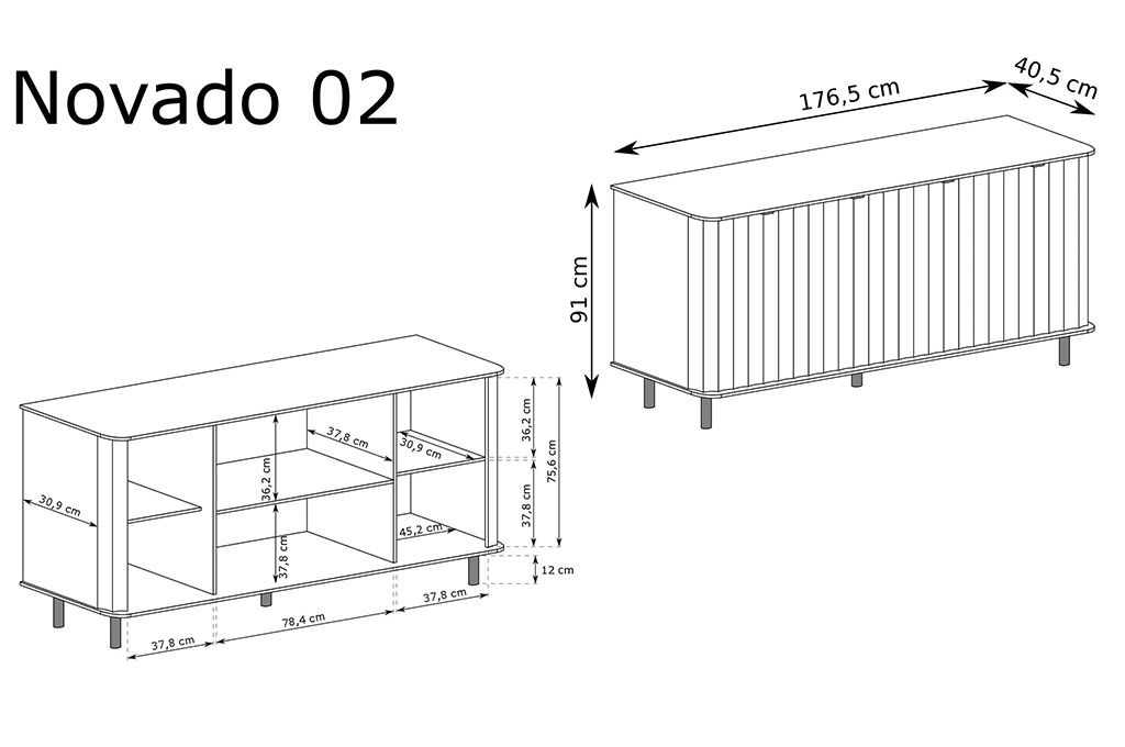 Komoda NOVADO to stylowe połączenie nowoczesnego designu i praktycznych rozwiązań. Jej elegancka, symetryczna konstrukcja sprawia, że doskonale komponuje się z wystrojem współczesnych wnętrz. Posiada trzy pojemne szafki (jedną większą oraz dwie mniejsze) z półkami, które oferują wiele miejsca na przechowywanie, pomagając utrzymać idealny porządek w domu. To mebel, który łączy w sobie estetykę i funkcjonalność – idealny wybór do salonu lub sypialni, gdzie liczy się zarówno styl, jak i wygoda.