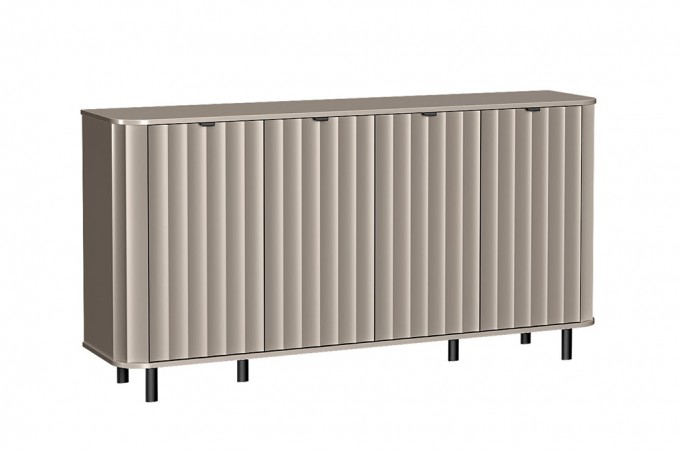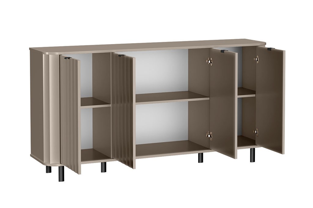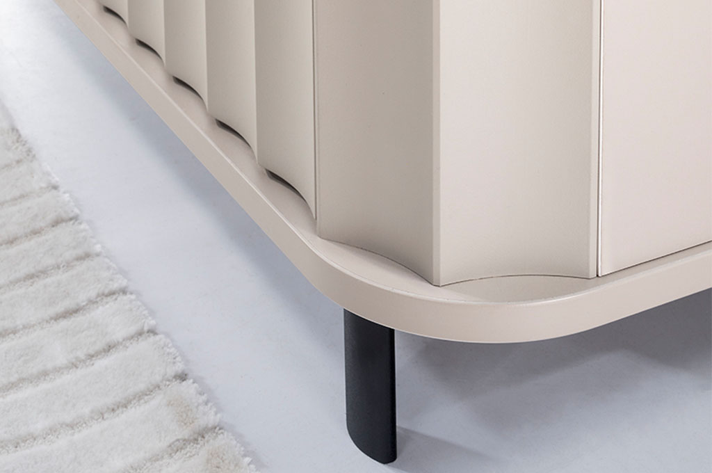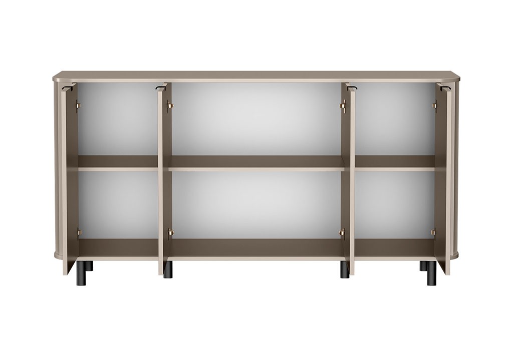Komoda opiera się na solidnych, stalowych nogach o owalnym kształcie, malowanych proszkowo, co gwarantuje trwałość oraz elegancki wygląd.