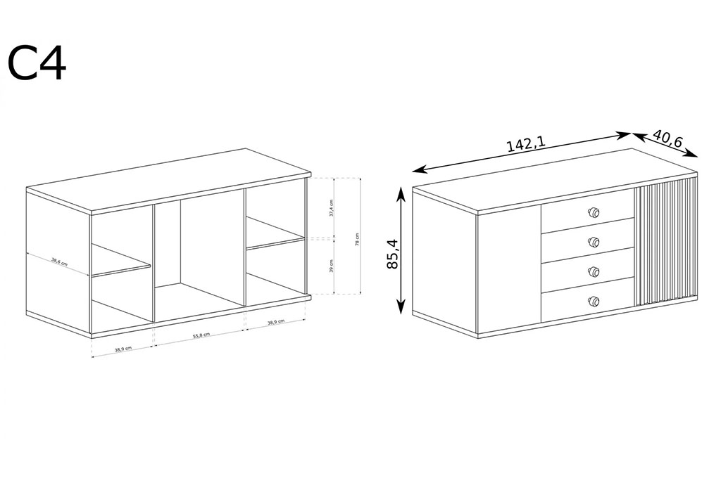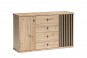 Szukasz stylowej i funkcjonalnej komody, która doskonale sprawdzi się w salonie lub sypialni? Komoda z kolekcji Cali to propozycja stworzona z myślą o miłośnikach nowoczesnego designu i elegancji. Jej wyjątkowy front zdobią dekoracyjne lamele w formie pionowych listew, które subtelnie kontrastują z ciemnym tłem, nadając meblowi charakteru.