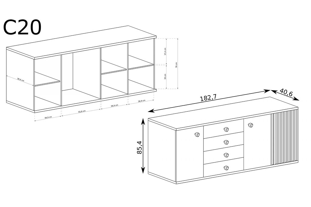 Nowoczesna duża komoda z lamelami CALI C20