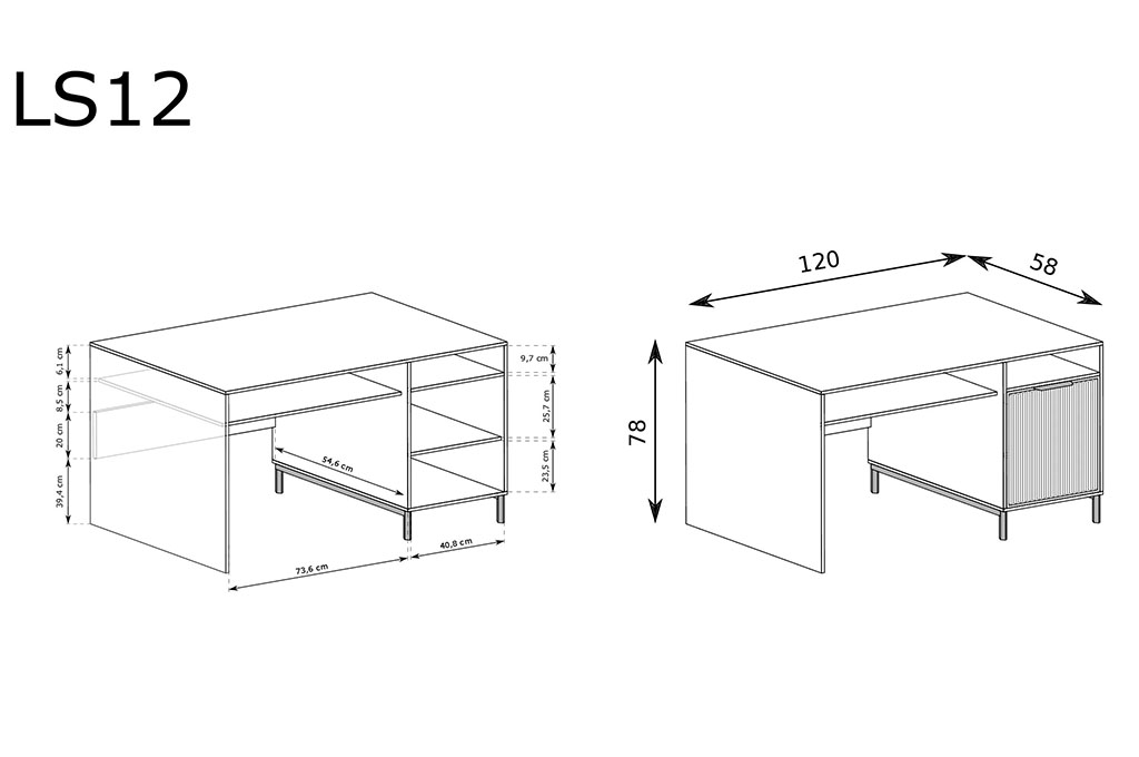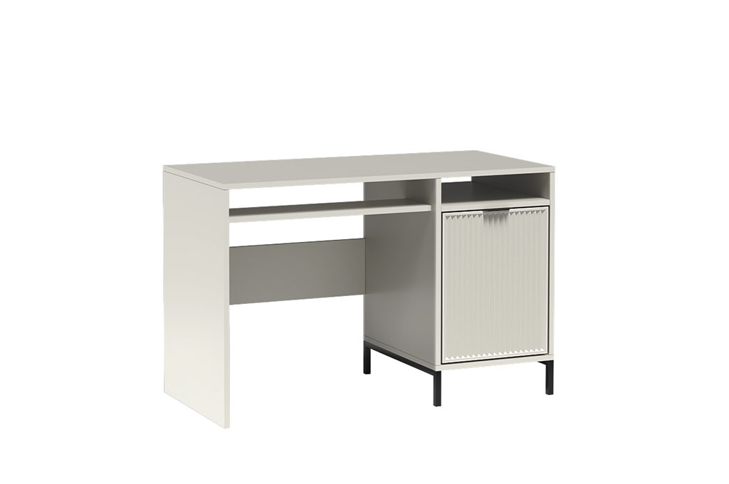Mebel wyposażono w wysuwaną półkę na klawiaturę, która zwiększa komfort pracy przy komputerze, oraz praktyczną szafkę po prawej stronie z wewnętrzną półką, dzięki której łatwo uporządkujesz dokumenty, akcesoria lub inne niezbędne drobiazgi.
