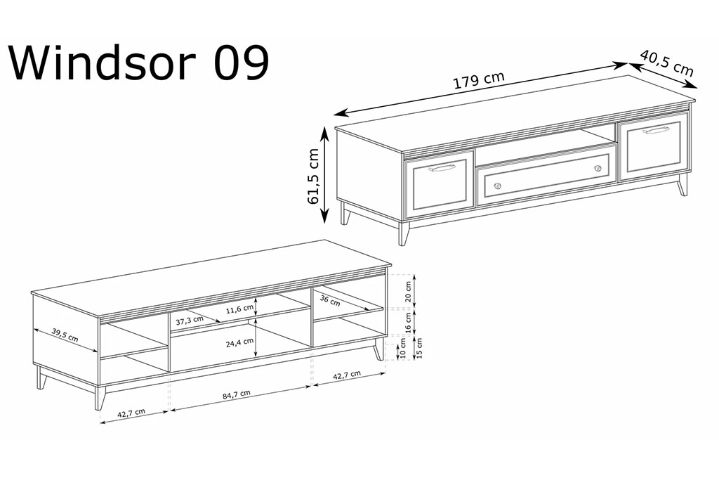 Szafka RTV Windsor-9 – elegancja i przestrzeń w większym formacie.