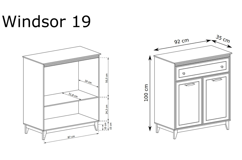 Dzięki kompaktowym wymiarom komoda WINDSOR W-19 świetnie sprawdzi się zarówno w mniejszych, jak i większych przedpokojach, oferując trwałość, funkcjonalność i stylowy wygląd.