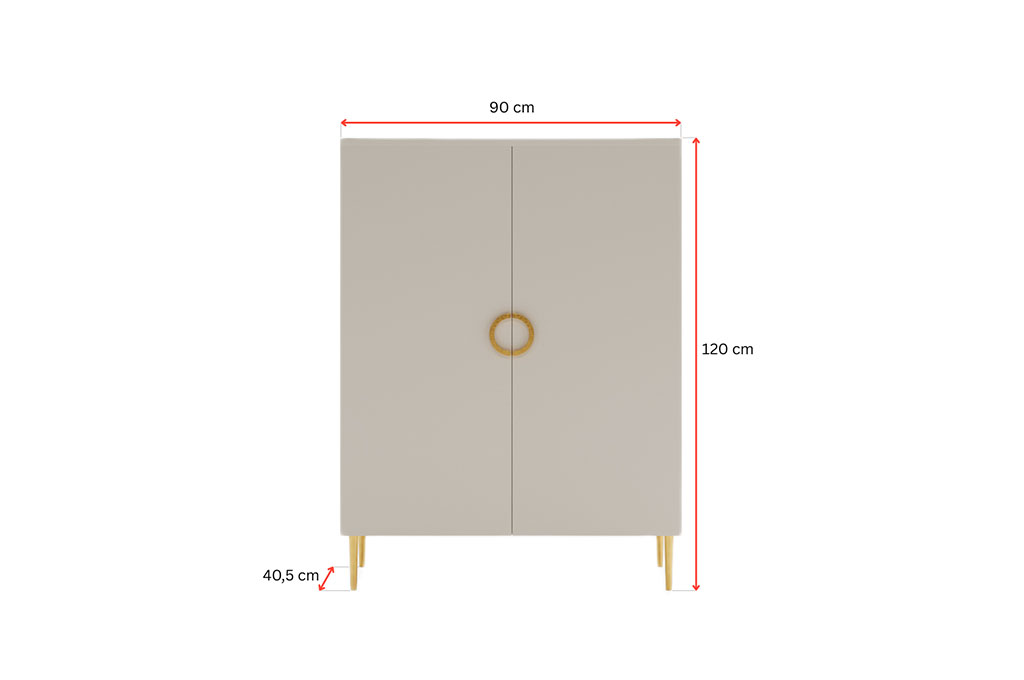 Komoda BELUNA 90 cm w modnym kolorze kaszmir to idealne połączenie nowoczesnego designu i praktycznego przechowywania. Smukła forma i wysokość 120 cm sprawiają, że doskonale sprawdzi się zarówno w salonie, sypialni, garderobie, jak i przedpokoju, także w mniejszych przestrzeniach.