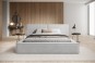 Masywne krawędzie o grubości około 20 cm nadają konstrukcji solidny i elegancki wygląd, a wygodne wezgłowie o wysokości 82 cm zapewnia komfortowe podparcie podczas relaksu, czytania lub oglądania telewizji. Szkielet łóżka wykonany został z wysokiej jakości komponentów płyty laminowanej, co gwarantuje stabilność, trwałość i długą żywotność mebla. Praktycznym uzupełnieniem konstrukcji jest pojemny schowek na pościel wykonany z wytrzymałej płyty HDF o dużej powierzchni, który idealnie sprawdzi się do przechowywania pościeli, koców oraz tekstyliów, pomagając zachować porządek w sypialni.