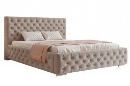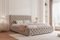 Łóżko tapicerowane CARMELO to wyjątkowa propozycja dla miłośników elegancji i ponadczasowego stylu, inspirowanego klasycznym wzornictwem Chesterfield. Efektowne, wysokie wezgłowie o wysokości 110 cm zostało starannie pikowane guzikami w kolorze tkaniny, tworząc luksusowy i wyrafinowany wygląd, który nadaje sypialni prestiżowego charakteru. Miękka pianka o grubości 5 cm zastosowana w wezgłowiu zapewnia nie tylko elegancki wygląd, ale również wysoki komfort podczas codziennego relaksu, czytania czy odpoczynku.