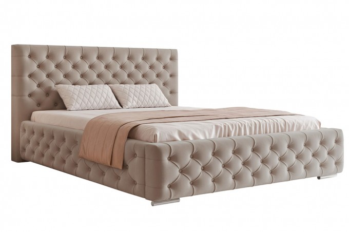 Łóżko tapicerowane jest wysokiej jakości welurową tkaniną Magic Velvet, która zachwyca miękką, aksamitną strukturą oraz subtelnym połyskiem, nadając meblowi elegancki i luksusowy wygląd. Tkanina ta cechuje się wysoką odpornością na ścieranie, łatwością w pielęgnacji oraz przyjemnością w dotyku, dzięki czemu łóżko przez długi czas zachowuje estetyczny wygląd. Pikowane guziki w kolorze materiału, zastosowane na całej powierzchni łóżka, tworzą spójną i harmonijną całość, podkreślając wyjątkowy charakter modelu CARMELO.