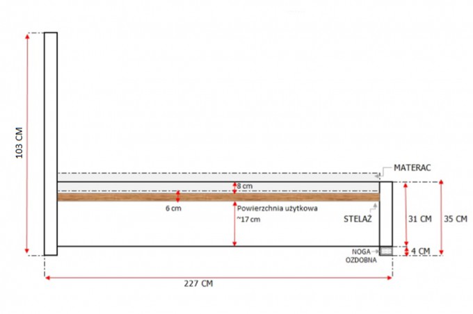 Standardowo łóżko wyposażone jest w eleganckie chromowane nóżki, które dodają bryle lekkości i nowoczesnego charakteru, natomiast dla pełnej personalizacji istnieje możliwość wyboru nóżek drewnianych w kolorze białym, sonoma lub wenge, co pozwala idealnie dopasować łóżko do aranżacji wnętrza. Stabilna konstrukcja zapewnia odpowiednie podparcie dla materaca, gwarantując komfortowy i regenerujący sen.