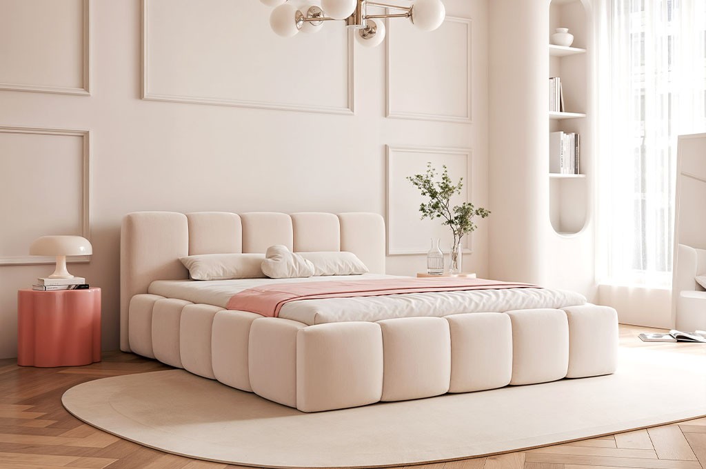 Łóżko tapicerowane CLOUDY LOW to nowoczesna i minimalistyczna propozycja dla osób ceniących prostotę formy, komfort użytkowania oraz funkcjonalne rozwiązania w sypialni. Niska, subtelna bryła sprawia, że model ten doskonale wpisuje się we wnętrza urządzone w stylu nowoczesnym, loftowym oraz skandynawskim, tworząc spokojną i przytulną przestrzeń sprzyjającą wypoczynkowi.