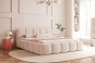 Nowoczesne łóżko tapicerowane z pojemnikiem na pościel w tkaninie welurowej 200x200 CLOUDY LOW