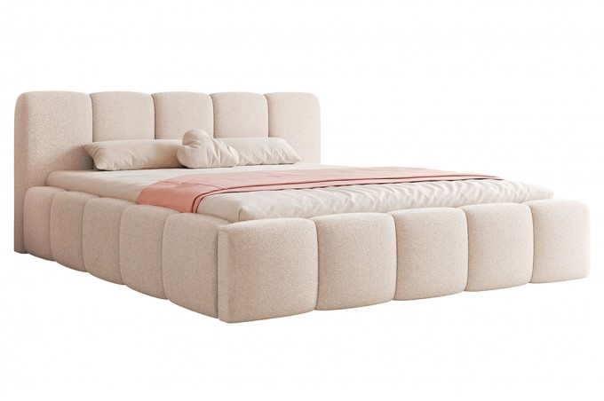 Nowoczesne łóżko tapicerowane z pojemnikiem na pościel w tkaninie boucle 160x200 CLOUDY LOW LOOP