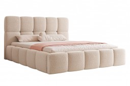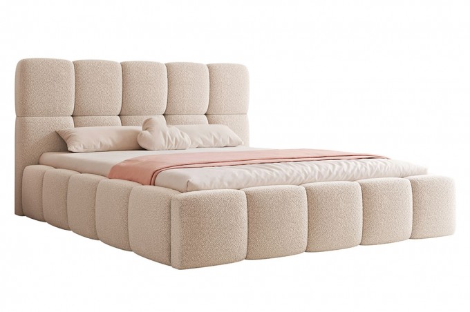 Nowoczesne łóżko tapicerowane z pojemnikiem na pościel w tkaninie ABRIAMO 140x200 CLOUDY boucle