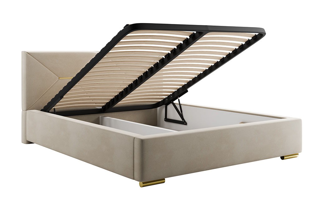 Łóżko tapicerowane z pojemnikiem na pościel i stelażem metalowym LUIZA 160x200