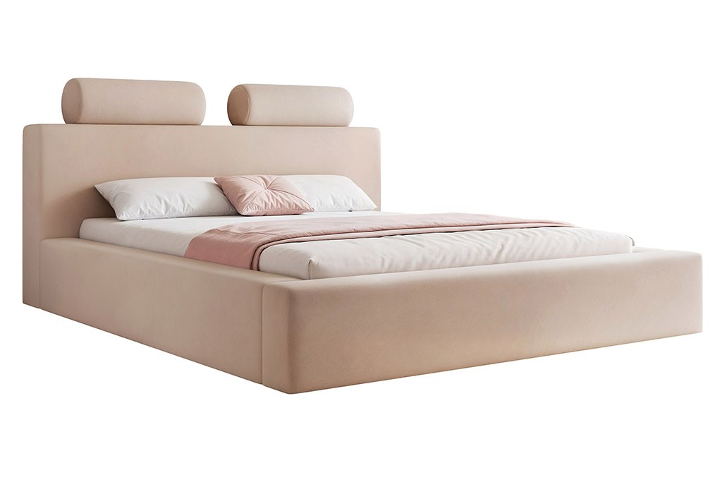 Nowoczesne łóżko tapicerowane z pojemnikiem na pościel w modnej tkaninie welurowej 160x200 ROSALIA