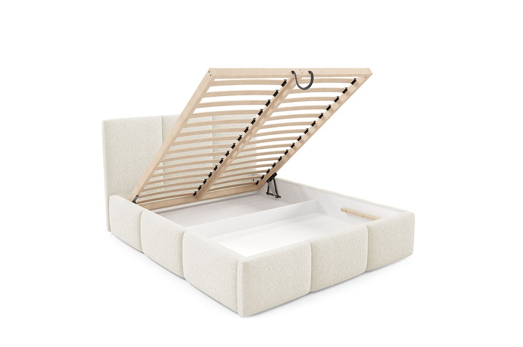 Łóżko tapicerowane z pojemnikiem na pościel i stelażem drewnianym LAMBI VELLURA 180x200