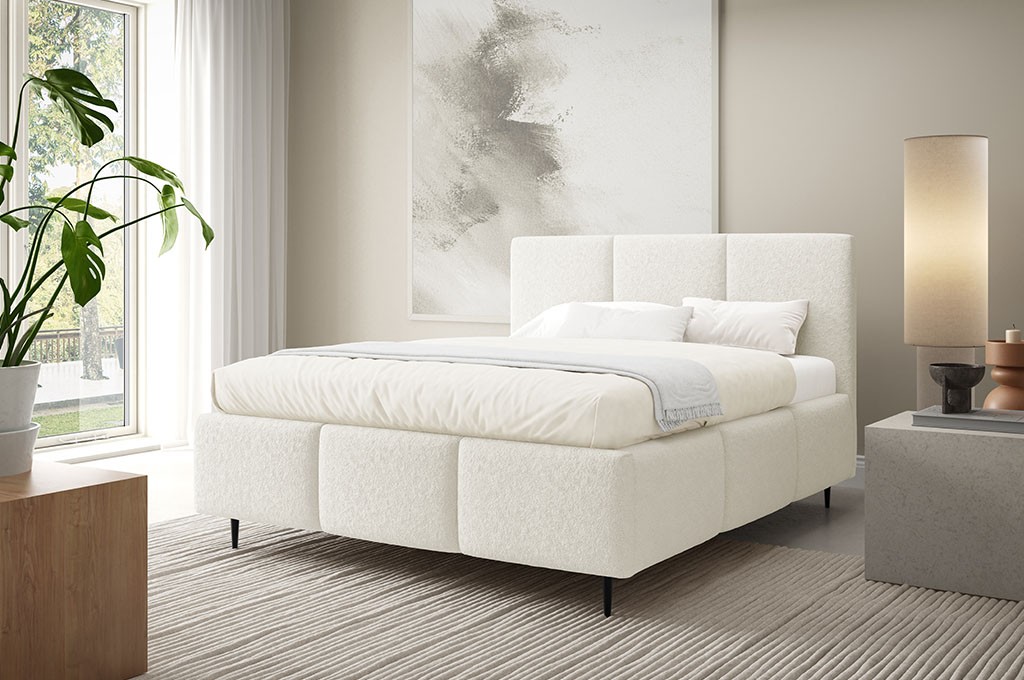 Starannie wykonana, tapicerowana bryła nadaje meblowi wyjątkowo miękki i stylowy charakter. Subtelne wykończenie oraz dopracowane detale sprawiają, że łóżko prezentuje się niezwykle elegancko, jednocześnie wprowadzając do sypialni atmosferę spokoju i relaksu. VELLURA z łatwością może stać się centralnym elementem aranżacji, przyciągając wzrok i podkreślając charakter wnętrza.