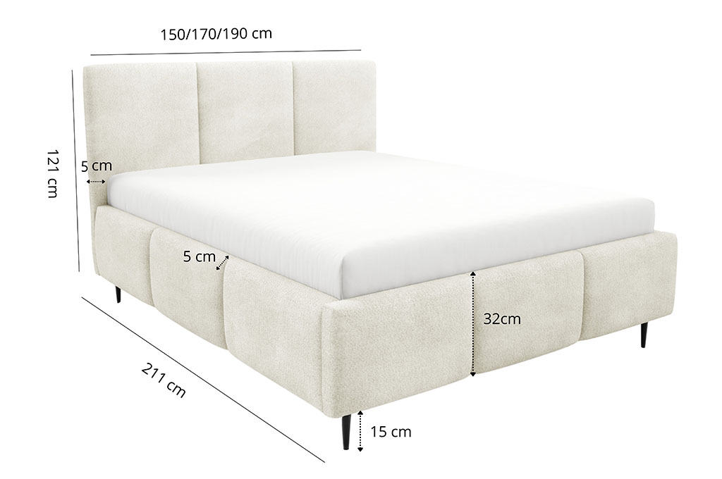 - Szerokość całkowita: 150/170/190 cm - w zależności od wybranego rozmiaru łóżka