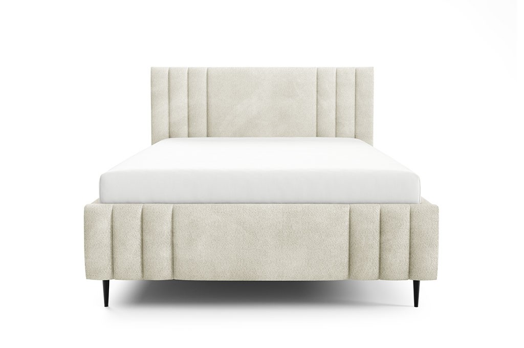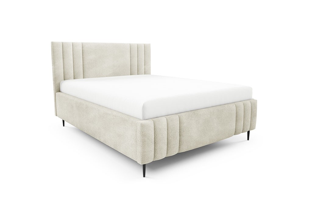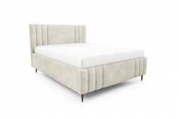 Łóżko tapicerowane na metalowych nóżkach z pojemnikiem na pościel i stelażem drewnianym CORAL ROVENA 140x200