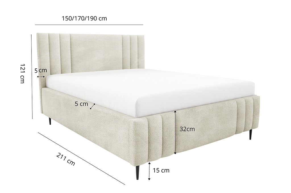 - Szerokość całkowita: 150/170/190 cm - w zależności od wybranego rozmiaru łóżka