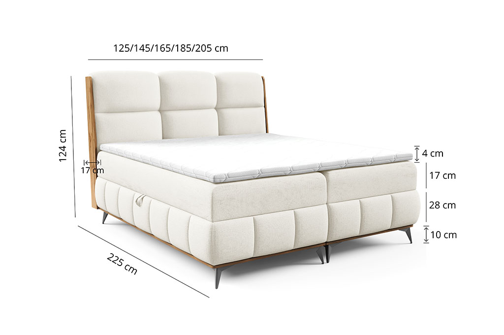• Szerokość całkowita: 125/145/165/185/205 cm - zależna od wybranego rozmiaru powierzchni spania