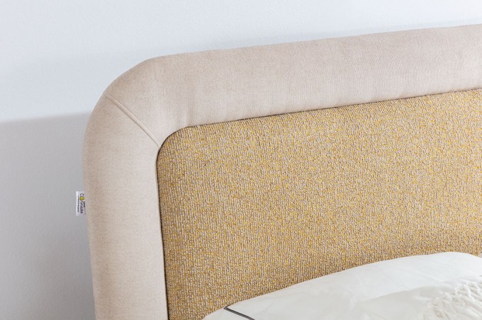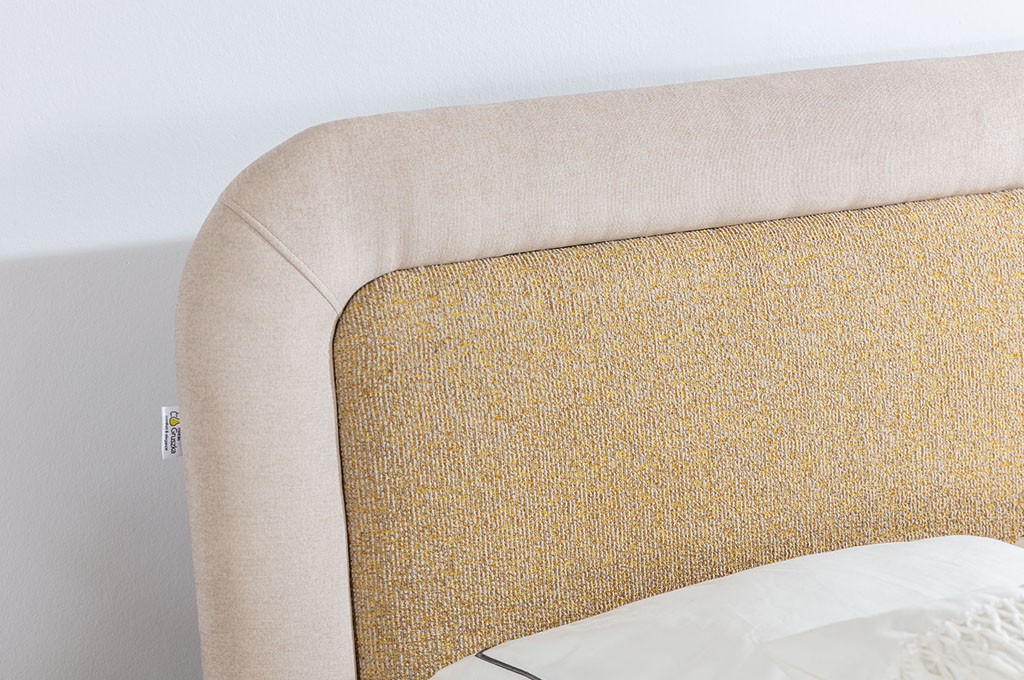Charakterystycznym elementem łóżka ELENA jest efektowne wezgłowie, które nadaje całej konstrukcji elegancki i stylowy wygląd. Model został wykonany w dwóch tkaninach, co tworzy interesujący kontrast i podkreśla nowoczesny charakter mebla. Starannie dobrane materiały oraz estetyczne wykończenie sprawiają, że łóżko prezentuje się niezwykle elegancko i przyciąga uwagę.