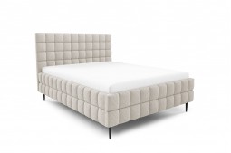Łóżko tapicerowane na metalowych nóżkach z pojemnikiem na pościel i stelażem drewnianym LAMBI AURELIA 140x200