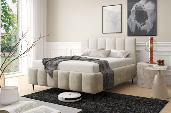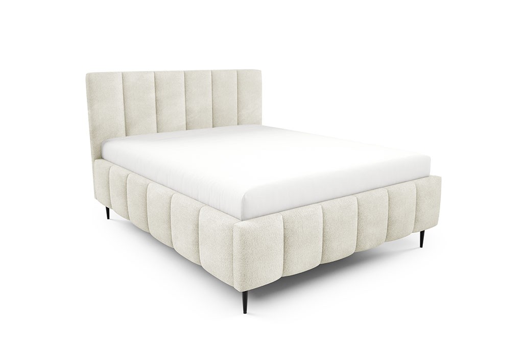 Łóżko tapicerowane na metalowych nóżkach z pojemnikiem na pościel i stelażem drewnianym CORAL LUNERO 160x200