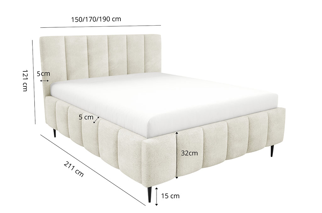 • Szerokość całkowita: 150/170/190 cm  - w zależności od wybranego rozmiaru łóżka