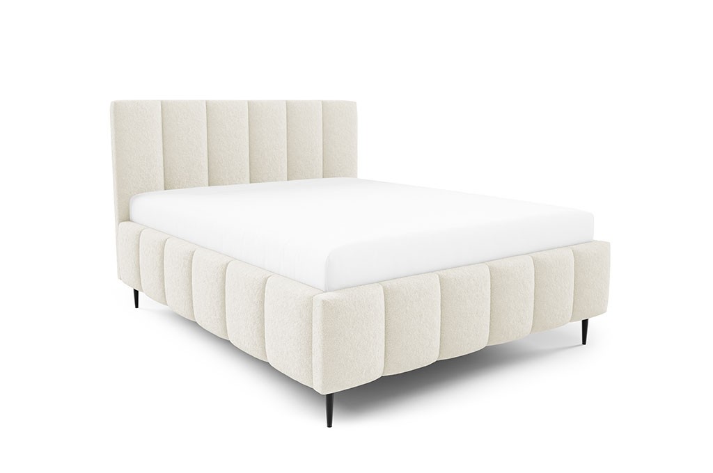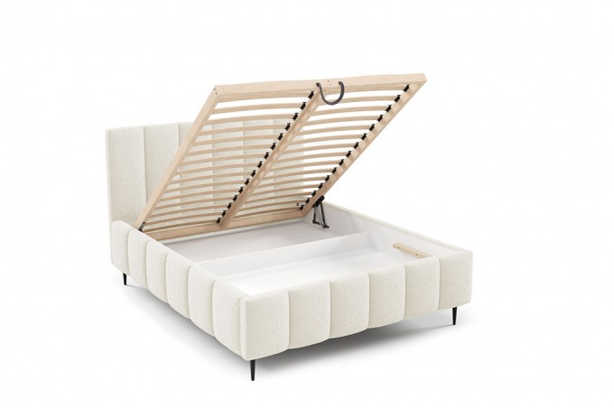 Łóżko tapicerowane na metalowych nóżkach z pojemnikiem na pościel i stelażem drewnianym LAMBI LUNERO 160x200