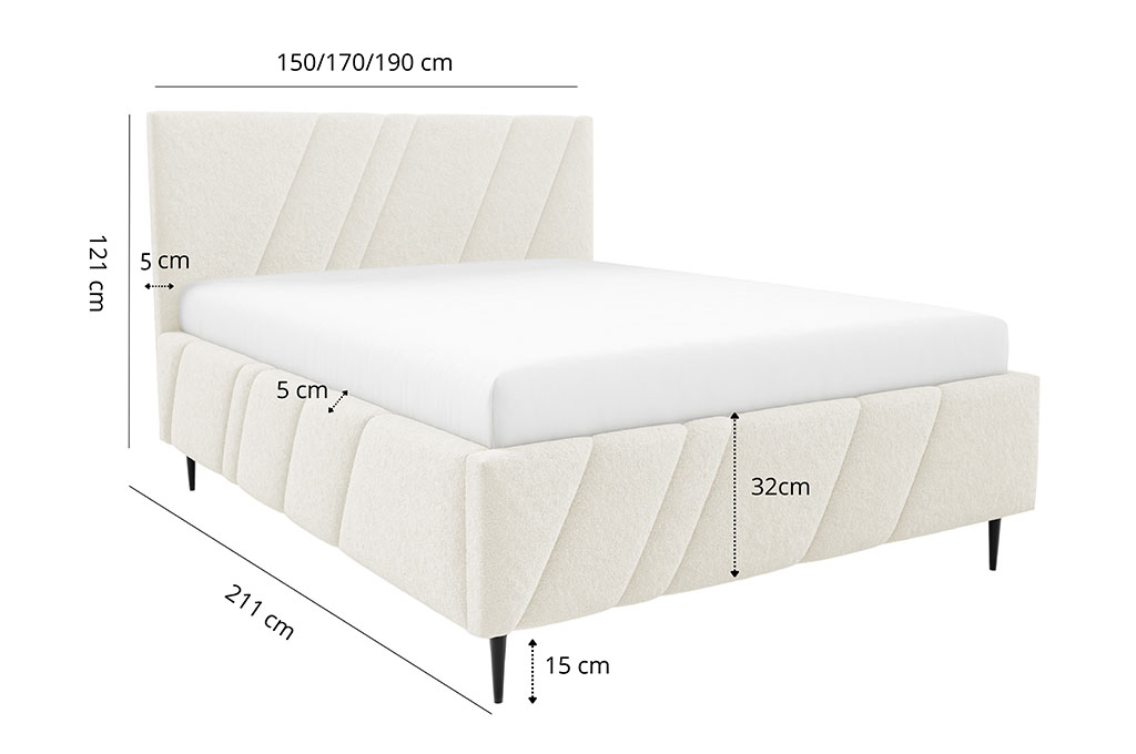 • Szerokość całkowita: 150/170/190 cm  - w zależności od wybranego rozmiaru łóżka