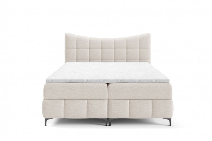 Materace częściowo obite tkaniną tworzą spójną i przytulną formę, która świetnie prezentuje się w każdej sypialni. Całość osadzona jest na czarnych, metalowych nóżkach, które dodają lekkości i wprowadzają subtelny, loftowy akcent.
